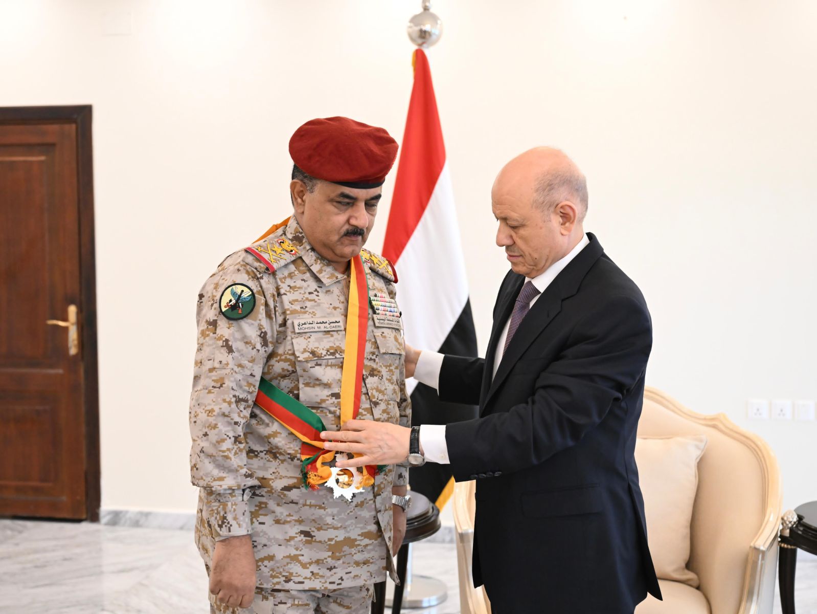 بعد مضي ثلاثة أشهر على اعلان نقل السلطة وتشكيل مجلس القيادة الرئاسي، أصدر رئيس المجلس رشاد محمد العليمي قرارا في 28 يوليو 2022، بتعيين اللواء الركن محسن محمد حسين الداعري، وزيرا للدفاع وترقيته لرتبة "الفريق" خلفا للفريق الركن محمد علي المقدشي، ضمن تعديلات وزارية محدودة ومتباعدة أجريت على حكومة معين عبدالملك.