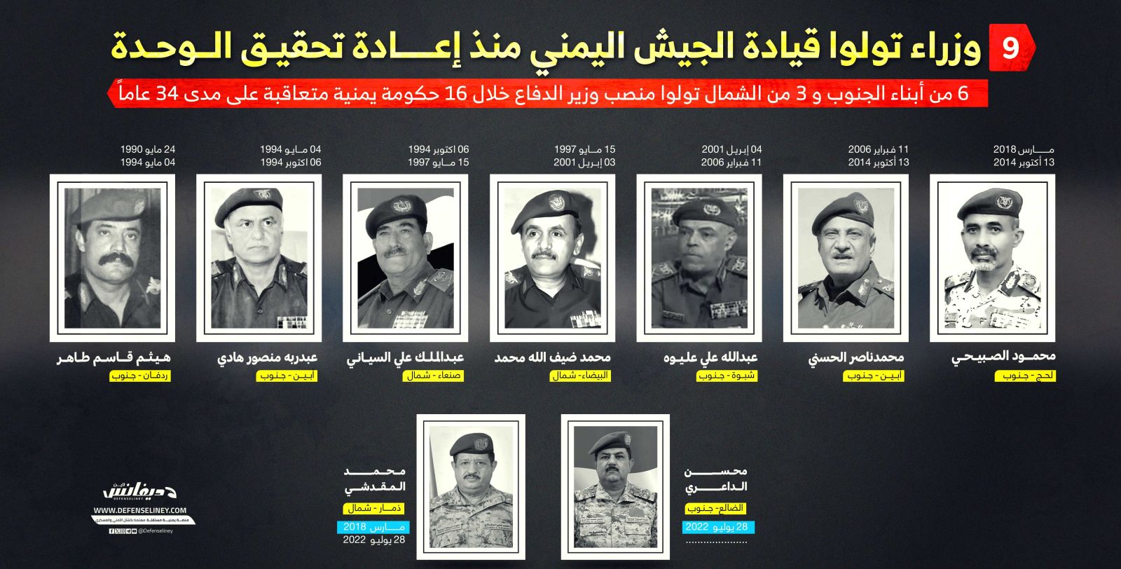 ليكون ثامن وزير دفاعي يمني وثالث ضابط شمالي يتولى المنصب.