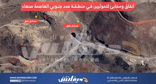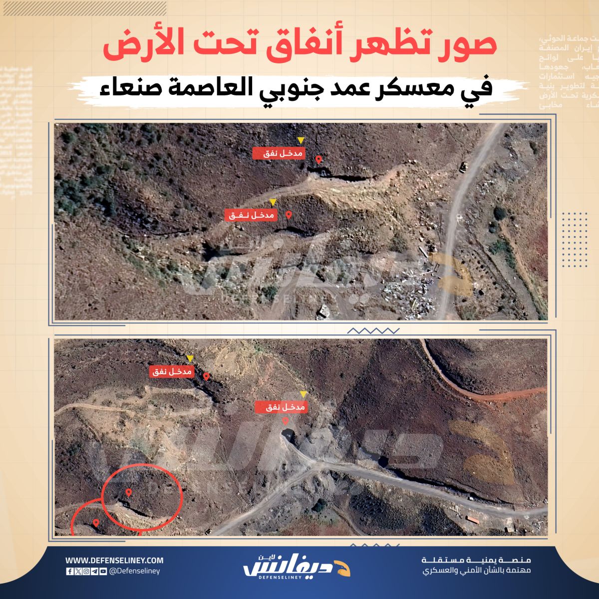 تظهر صور جوجل إرث وجود أنفاق ومخابئ تحت الأرض ومرافق عسكرية تابعة لجماعة الحوثي المدعومة من إيران في معسكر بمنطقة عمد التابعة لمديرية سنحان وبني بهلول جنوبي العاصمة صنعاء.