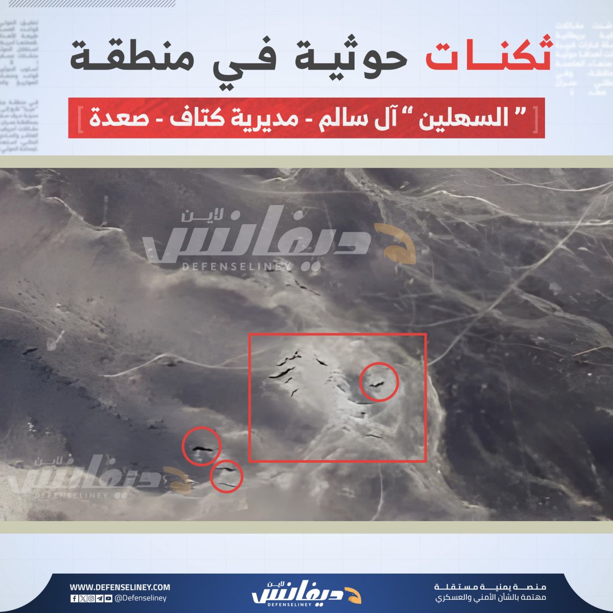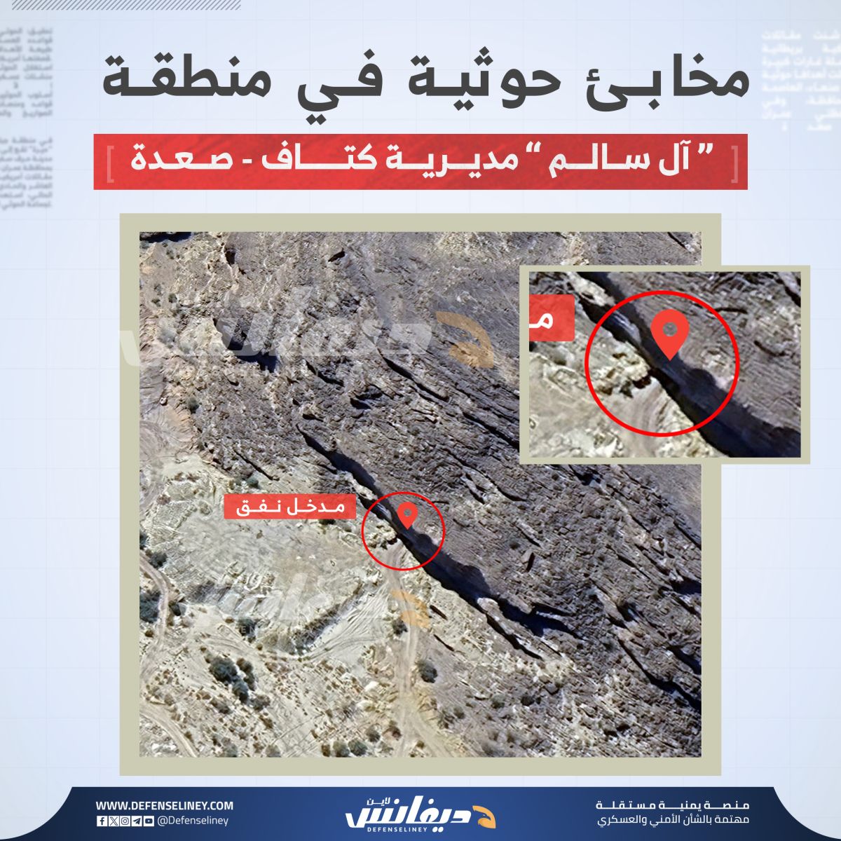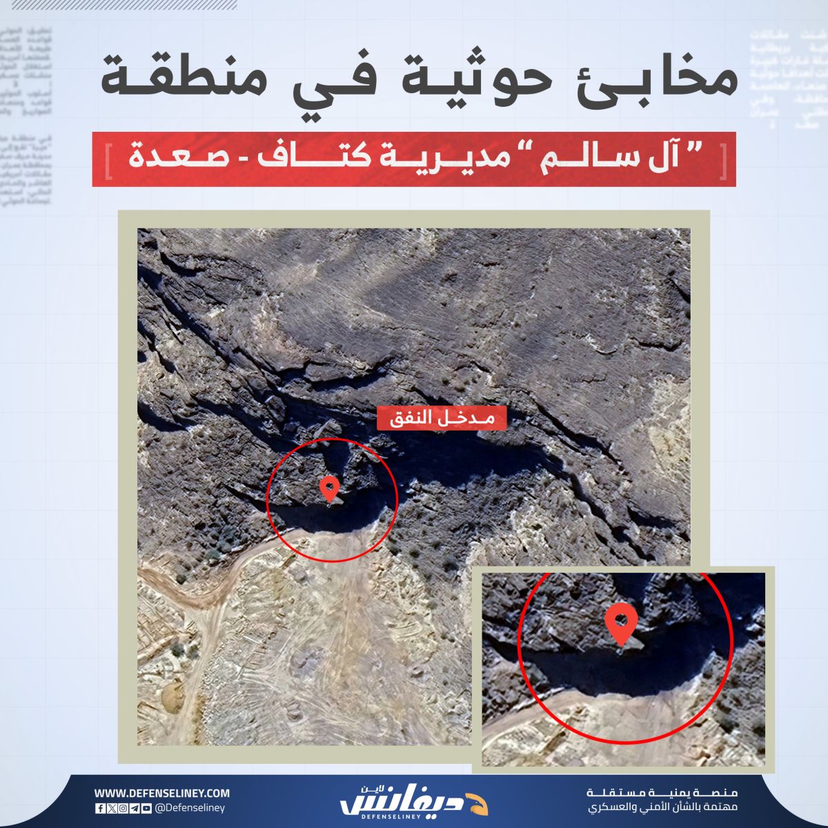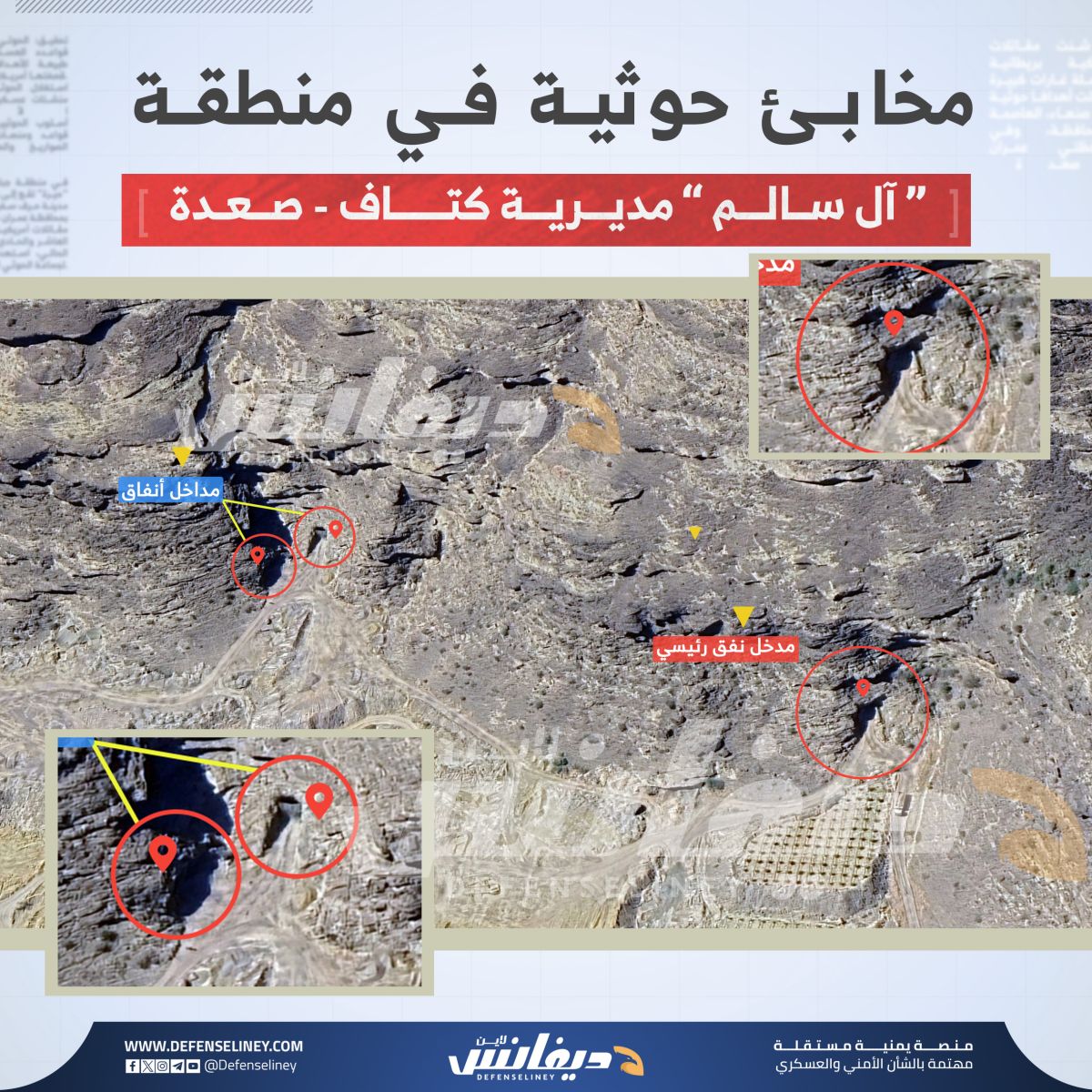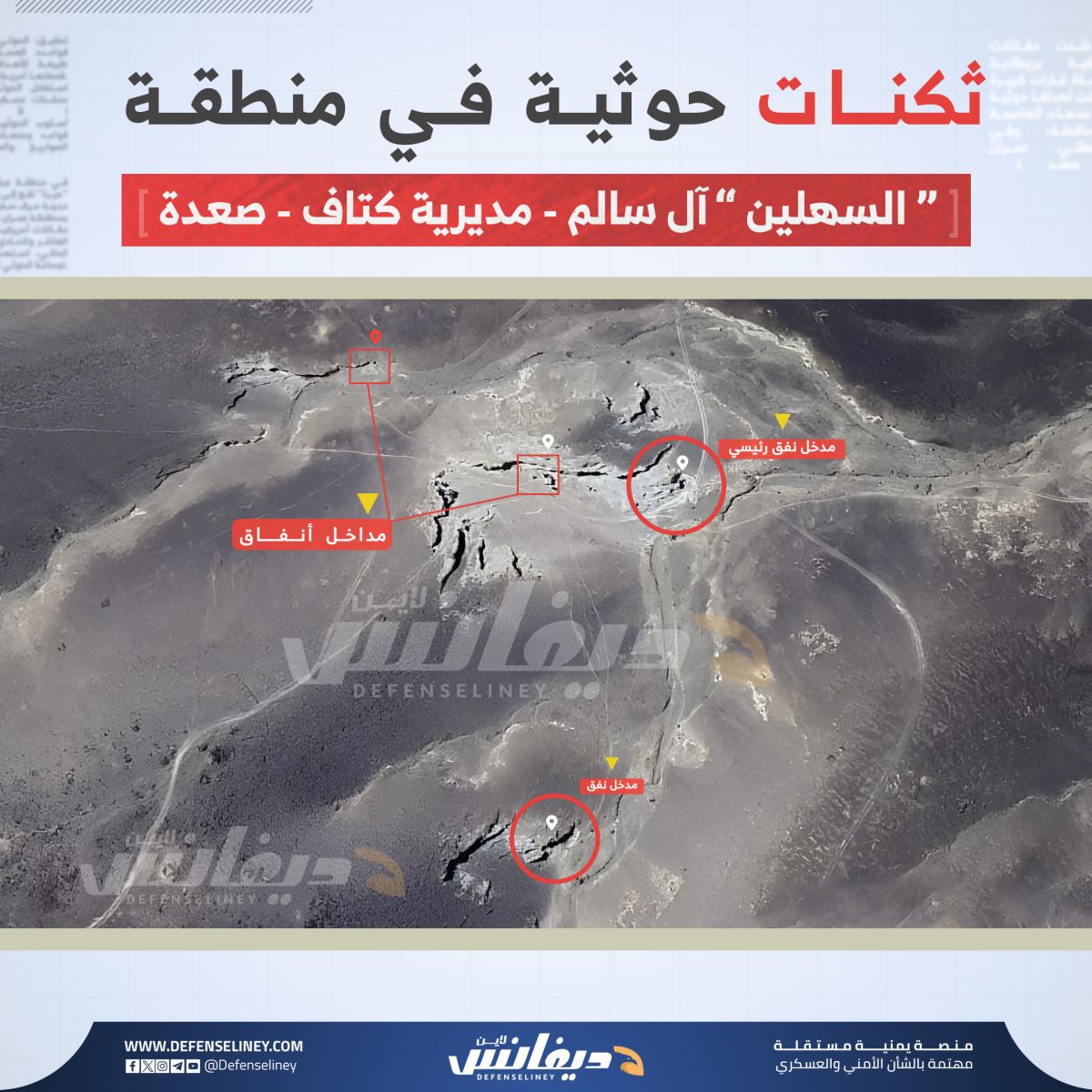 وكان موقع "ديفانس لاين" قد تناول في تحقيق سابق مجمعات وقواعد عسكرية للحوثيين في منطقة آل مقبل، تضم مخابئ وأنفاق تحت الأرض.