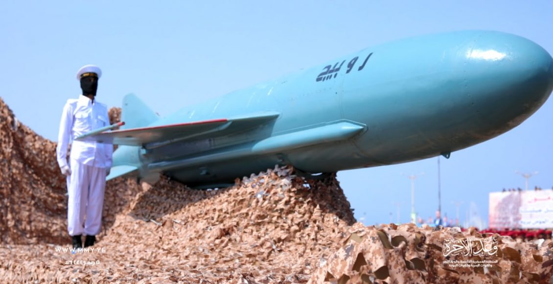 وتستخدم الجماعة الحوثية الطيران المسير في مهاجمة السفن، وكذلك صواريخ مجنحة وباليستية وفرط صوتية أرض- أرض، في استهداف سفن حربية وحاملات طائرات في البحر الأحمر وباب المندب وخليج عدن وفي البحر العربي.