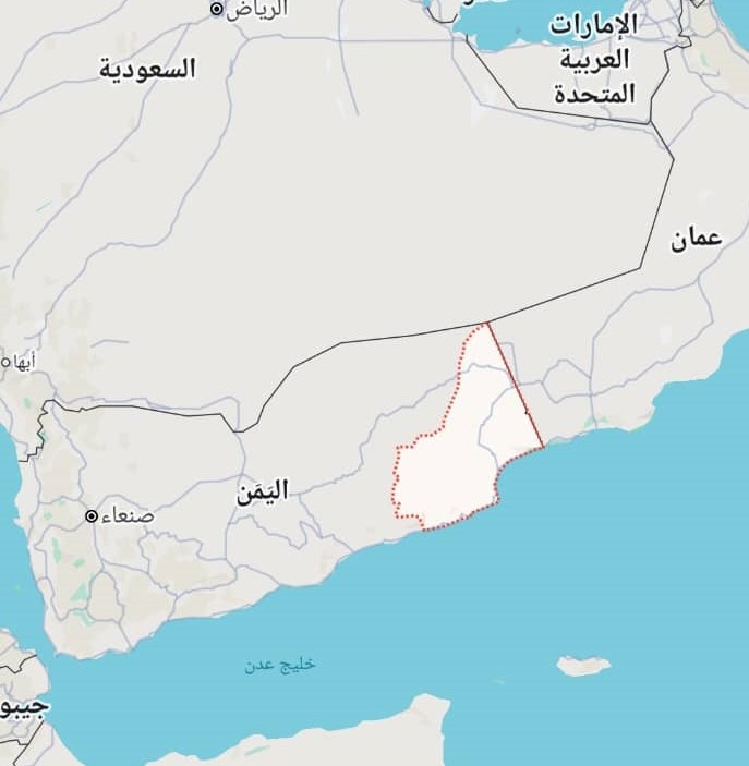 المهرة، هي ثاني أكبر المحافظات اليمنية مساحة جغرافية، بمساحة تزيد عن 67 ألف كيلو متر. تطل على البحر العربي، وتمتد على الحدود الشرقية مع سلطنة عمان، بمساحة حوالى 290 كيلو متر ممتدة عبر سلسة مرتفعات جبلية ويقع حوالى 70% منها في صحراء الربع الخالي، تلتقي عند الحدود المشتركة مع السعودية. الحدود مع عمان تم ترسيمها بموجب اتفاقية حدودية موقعة في الأول من أكتوبر 1992م.